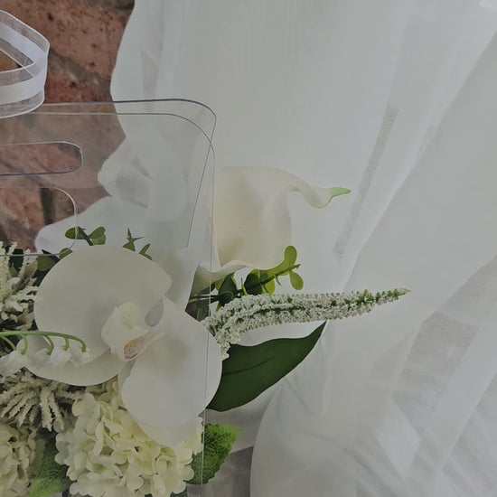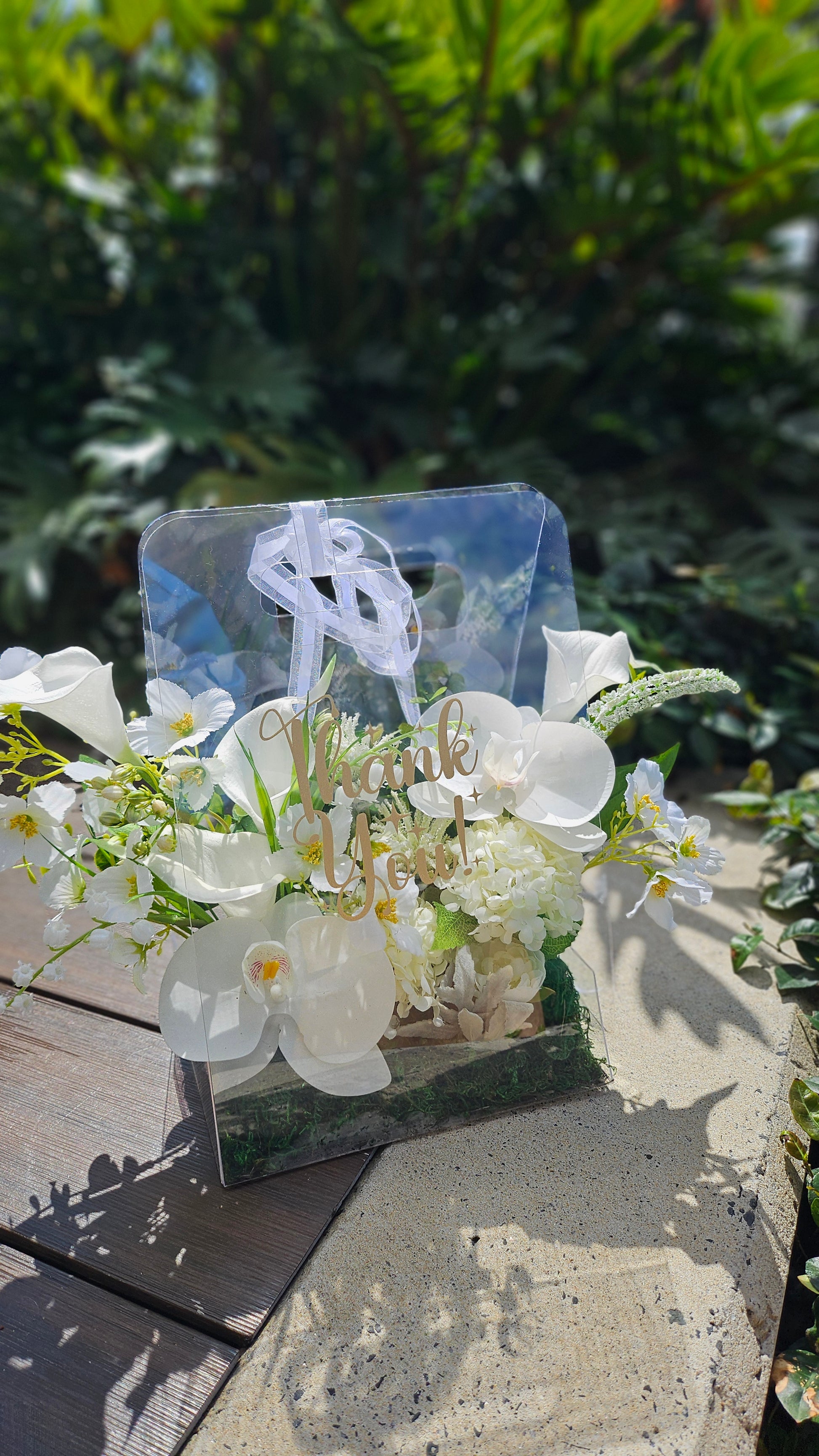 Elegant, modern, and everlasting — our Acrylic Flower Bag features premium silk blooms beautifully arranged in a crystal-clear carry bag.